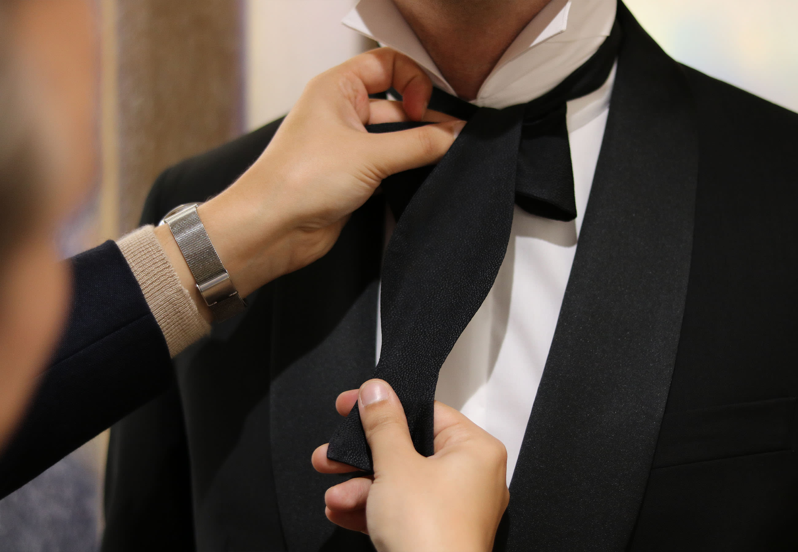 It’s that time of the year again: black-tie season. And that means bow ties – the perfect way to finish your formal attire these holidays. Of course, you can go for a pre-folded bow tie, but there’s nothing quite like one you’ve tied yourself. It gives a sartorial touch to your look and a perfect imperfection that adds character. If you don’t know how (or like us, could always use a reminder), we’ve asked our Store Lead from the AM House Amsterdam Iiro for a tutorial. Watch our how-to video to see the step-by-step process, follow along, and hear his tricks to make it easier on yourself or someone else!