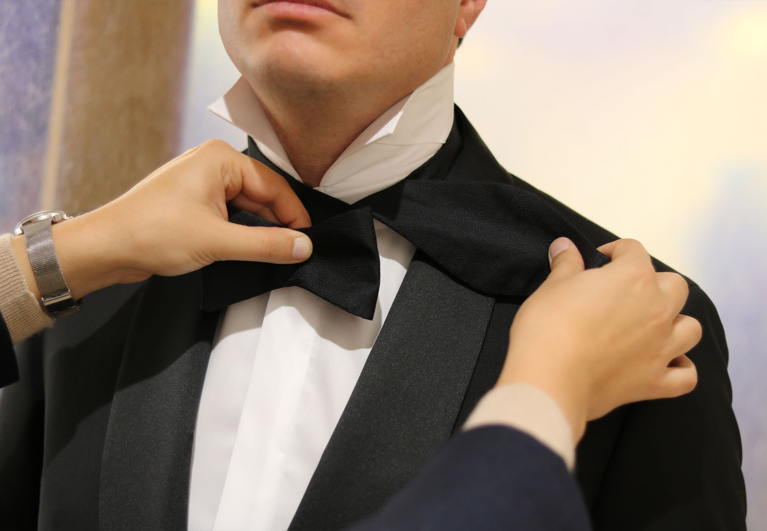 If you’re still having no luck, feel free to come by our store for help. Our style advisors are pros! We’ll also be able to assist if you haven’t got your bow tie yet. You can pick up a ready-to-wear version in store or order a custom bow tie. Folded or unfolded in classic silks and satins to textured velvets and knitted options in a range of colors. You can even make it extra special with your own initials.