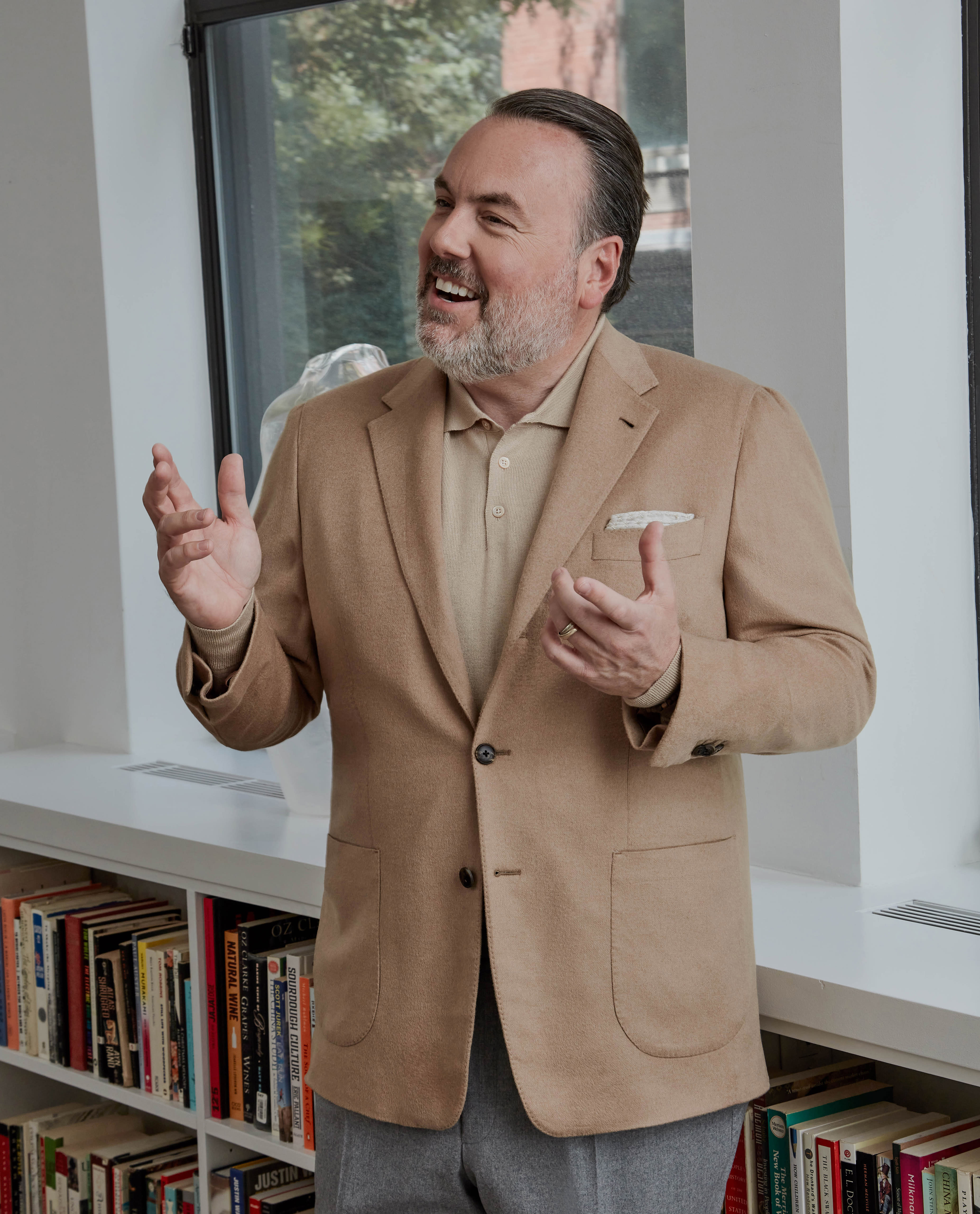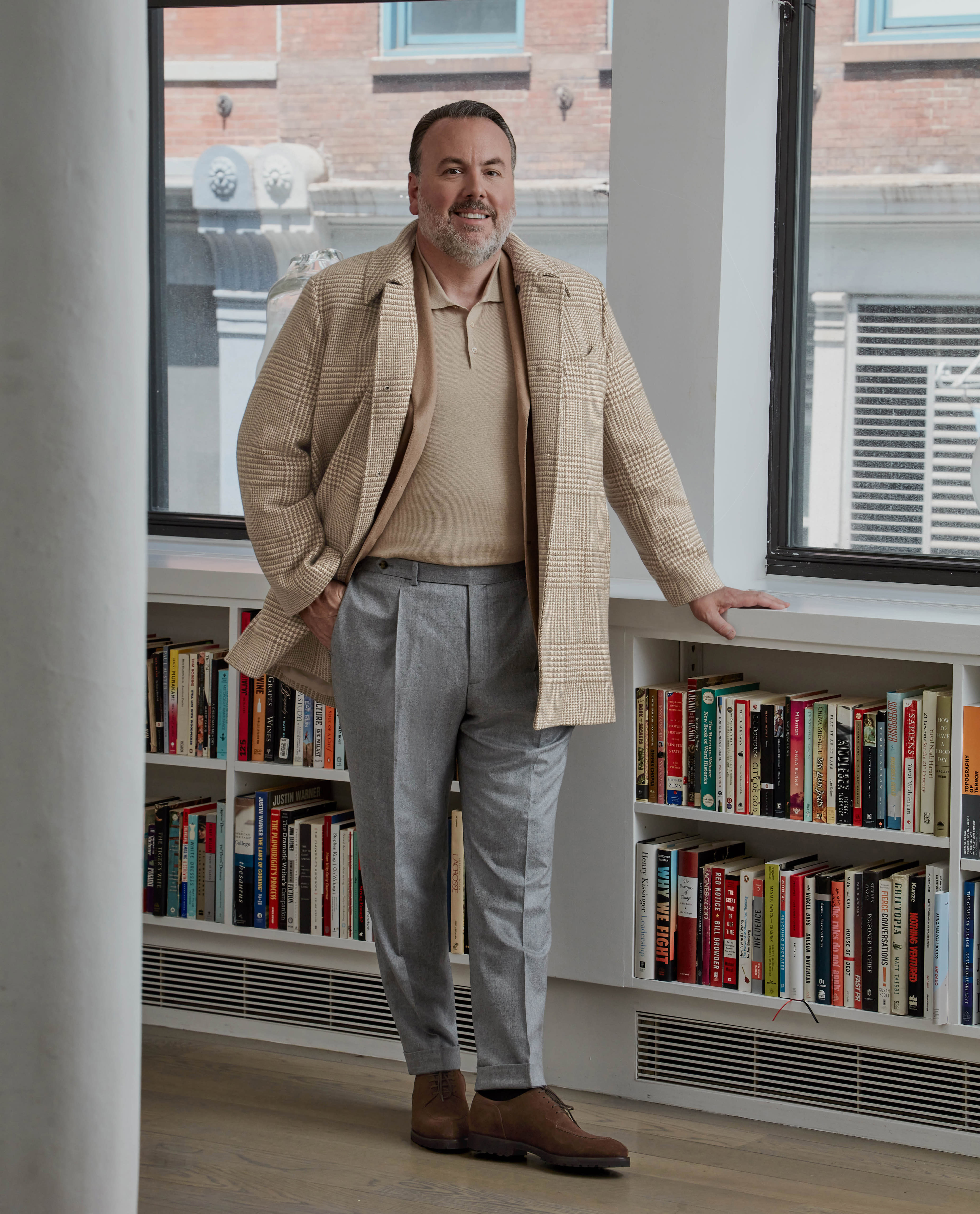 I have told my clients for years and years to always wear a third piece, whether it’s a sweater, an outerwear piece, a sports coat or my favorite, the vest. Sometimes it’s just a tie. Like if I’m in the store and it’s busy and I can’t wear a jacket because I’ll get too hot, I’ll just wear a knit or I’ll just wear my vest. But I always, no matter whether I’m out to dinner or even at the office, I’m always wearing some type of third piece. It separates the men from the boys.