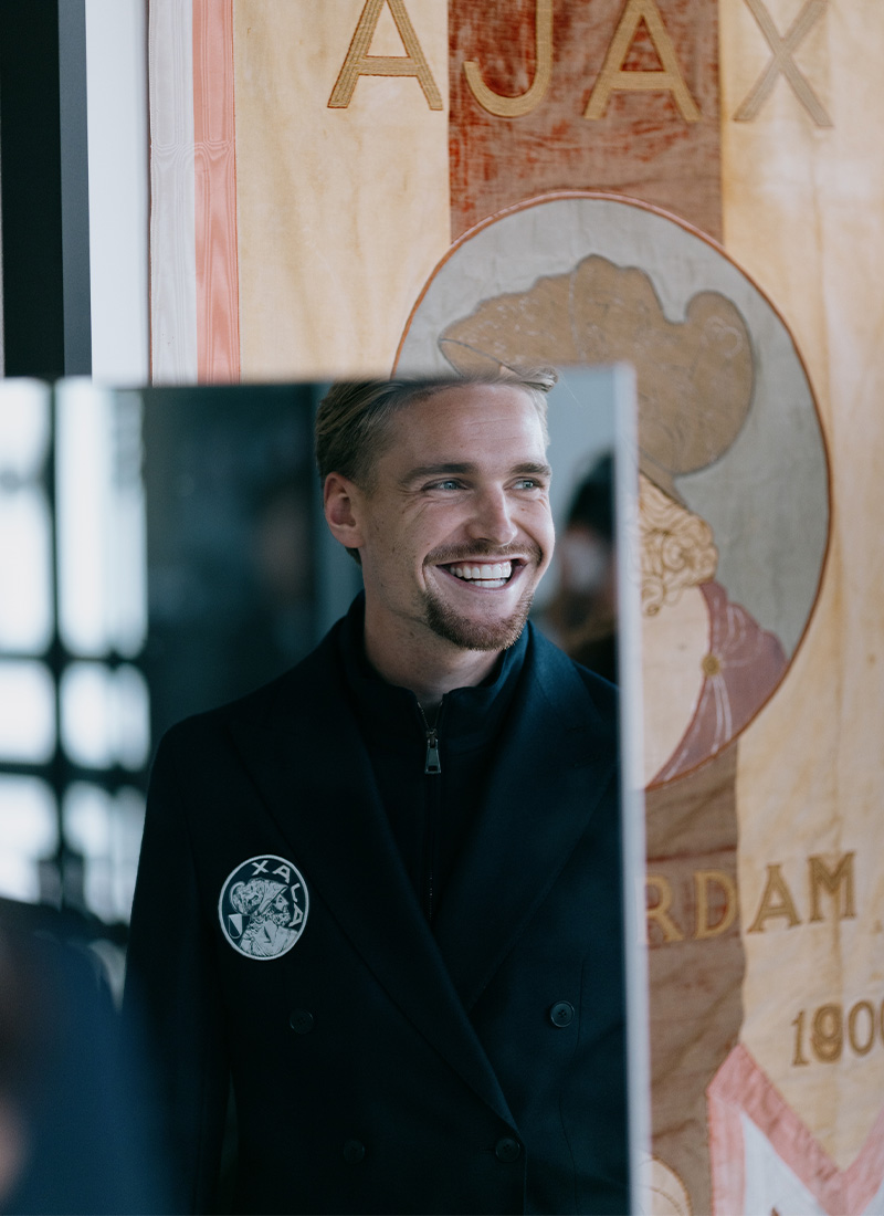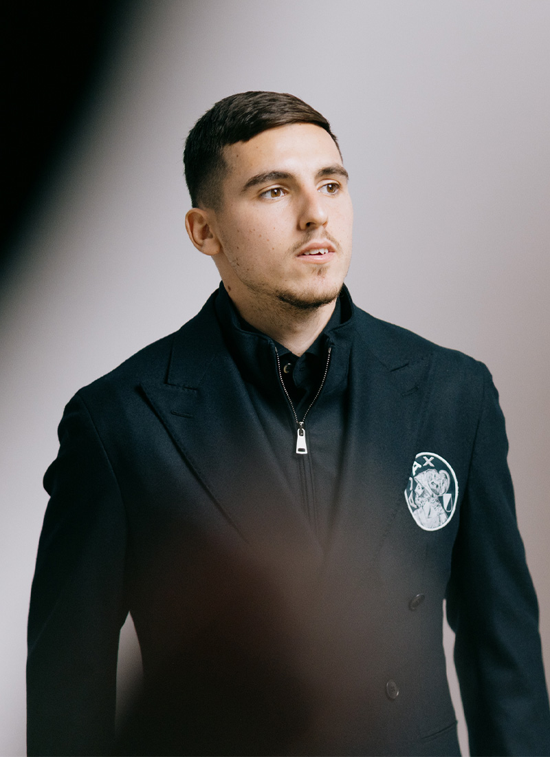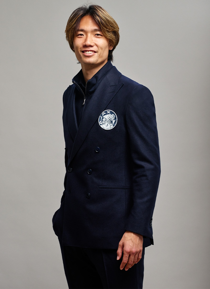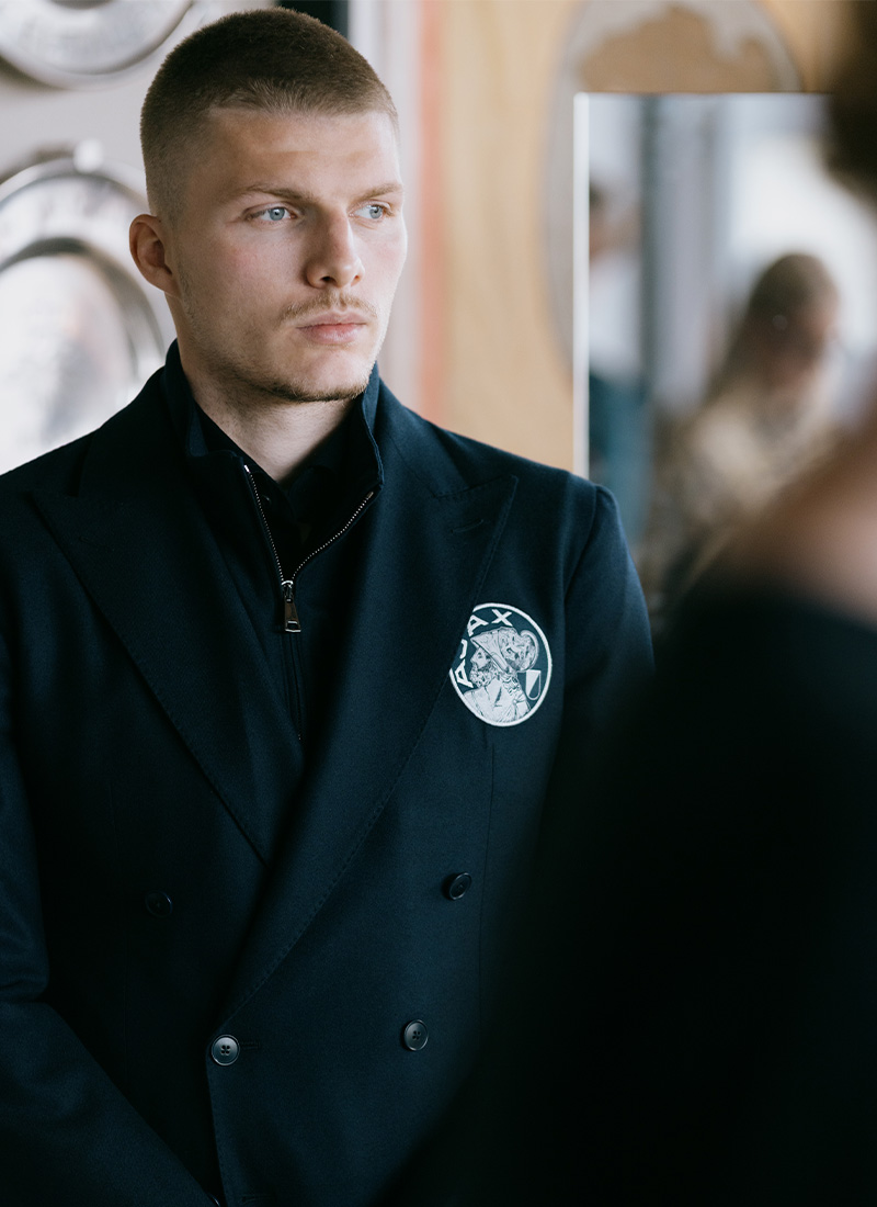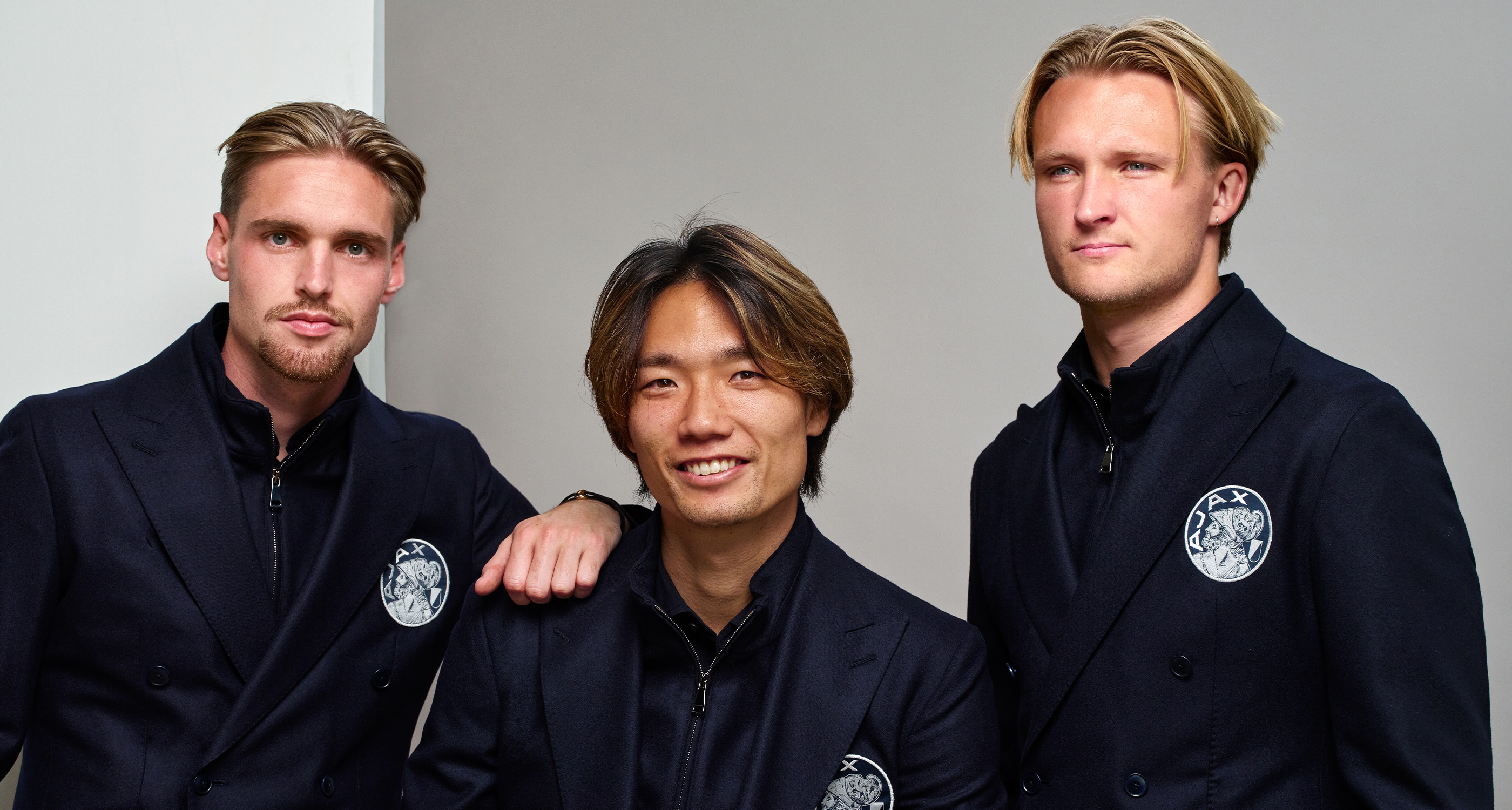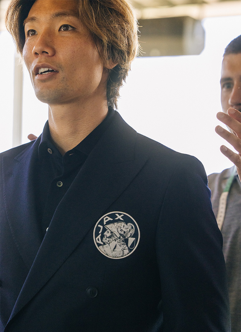 For newcomers, like Ko Itakura, who joined Ajax this summer, the suits are a way of feeling immediately connected: “It’s important that everyone looks good together. The right clothing can make the team feel connected, like we move as one.”