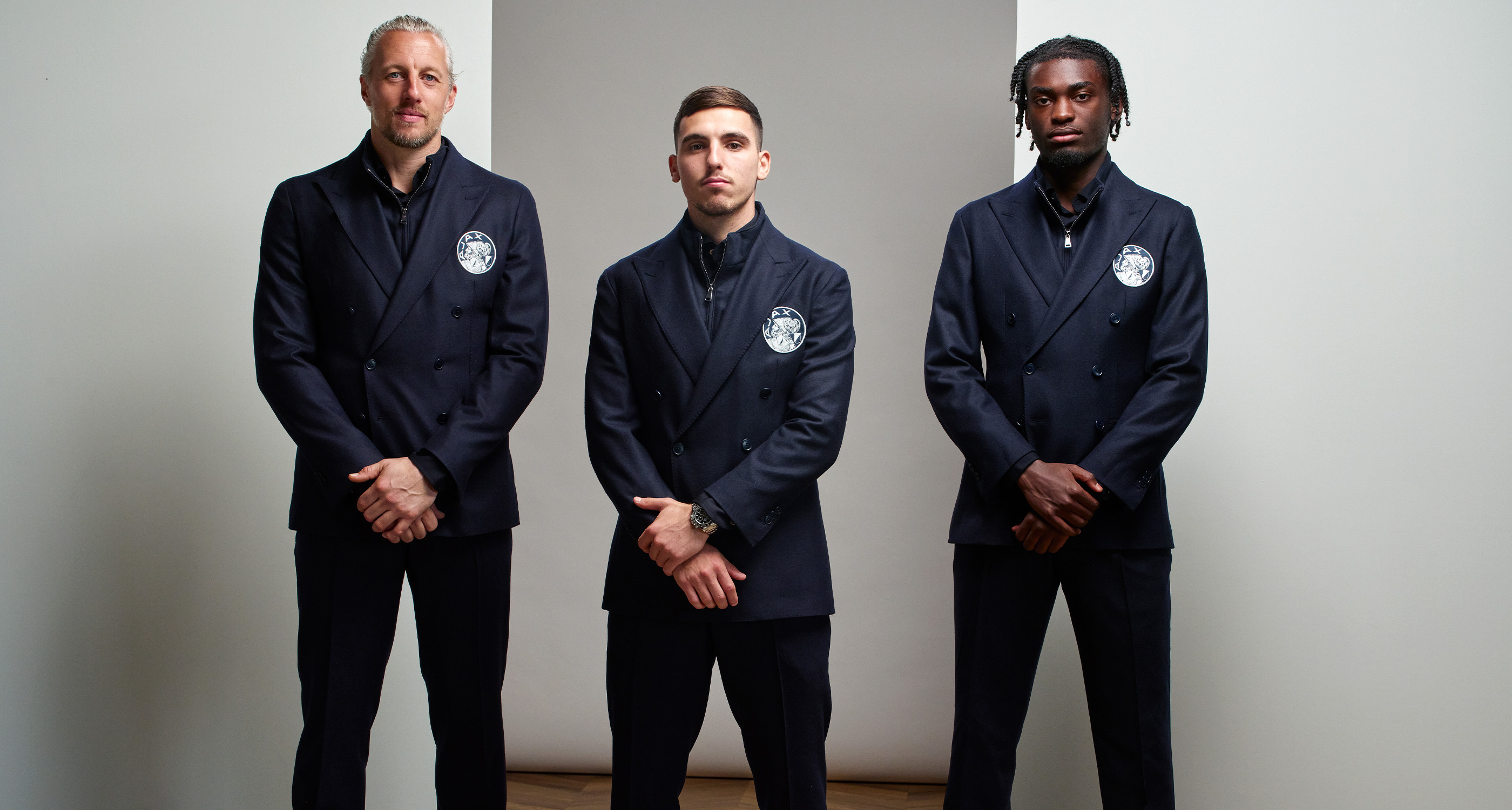 This aesthetic shift is more than fashion. It is philosophy. Ajax has always been known for its branie: fearless, attacking play that changed world football. Just as the first team aspires to stay true to the authentic Ajax way in challenging times, their new formalwear embodies that same spirit: bold, classic, and uncompromising.