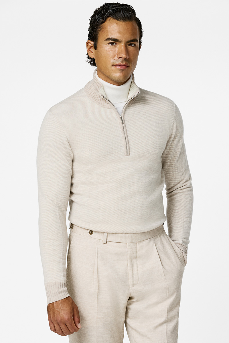 A celebration of pattern, texture and craftsmanship, our jacquard knitwear is available in both Ready-to-Wear & Made-to-Measure. Ready-to-Wear provides effortless versatility across a curated selection of designs, while Made-to-Measure is available exclusively at our Atelier Munro Houses and boutique. Crafted in 25 yarn qualities of pure cashmere jacquard, each piece can be personalized in a wide range of models.